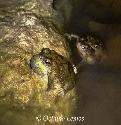 Os machos desta espécie começam a vocalizar ao fim da tarde em galerias subterrâneas, onde depositam seus ovos em ninhos de espuma.